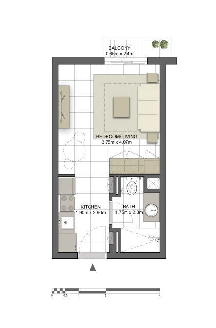 Жилой комплекс включает в себя три типа недвижимости: функциональные студии, просторные апартаменты с 1 и 2 спальнями. Жилая площадь резиденций варьируется от 29 до 148 квадратных метров. В общей сложности проект представляет 203 единицы недвижимости.